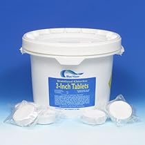 Blue Wave Tri-Chlor 3" Tablets COMPARE TO BIOGUARD SUN GUARDEX AND PACE. Powerful 90% available chlorine! Our hottest selling tablet weighs 7 oz. and keeps pool water safe and clean by eliminating dangerous contaminants. Stabilized chlorine is UV protected against the sun's harmful rays and these slow-release tablets require less frequent applications. Each tab is individually wrapped. Convenient for use in floaters automatic feeders and skimmers. 99% Trichloro-S-Triazinetrione. Available sizes: 10 lbs. 25 lbs. 50 lbs. 100 lbs.