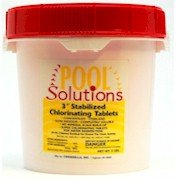 Pool Solutions 3 inch Chlorine Tablets5 lbs - 5 lbs - Pool Solutions 3 inch Chlorine Tablets5 lbs - 5 lbs This product can be used in any dispenser that uses Chlorine Concentrate tablets or sticks. Should not be mixed with any other kind of chlorine as an explosion could result. NOTE: During heavy bathing loads very hot weather rain etc. and at least once a week chlorine residual should be raised to 3.5-5.0 ppm with granular chlorine (super chlorinated). It is preferable to do this after swimming day so that pool will have a chance to come back to the 1-2 ppm before swimmers go back in next day. Reentry into treated swimming pools is prohibited above levels of 3 ppm of chlorine. Tablets will last approximately 5-7 days depending upon temperature and amount of water flow.[]